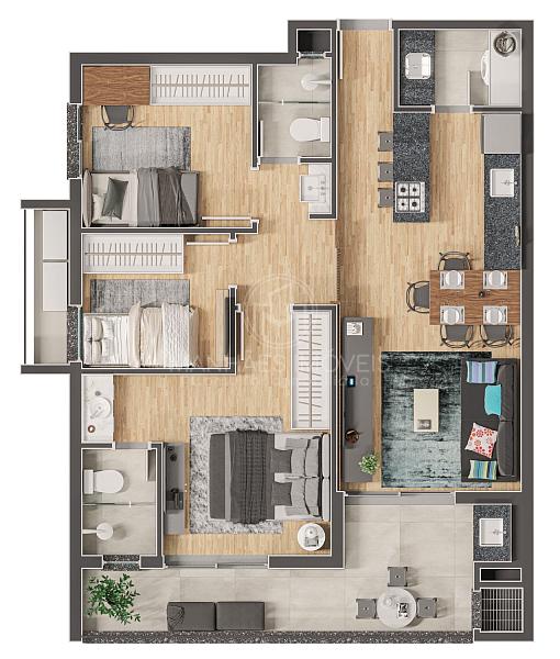 3 dormitórios (1 suíte)
