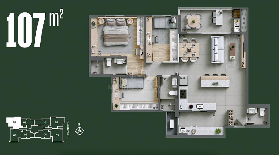 Planta do Apartamento Tipo | 107 m²