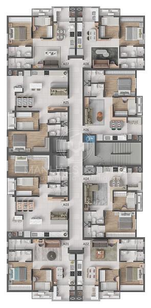 Implantação do pavimento tipo na torre A | 8 Aptos por andar