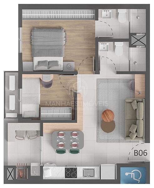Planta humanizada do Apartamento Tipo B06 - 52m² priv.