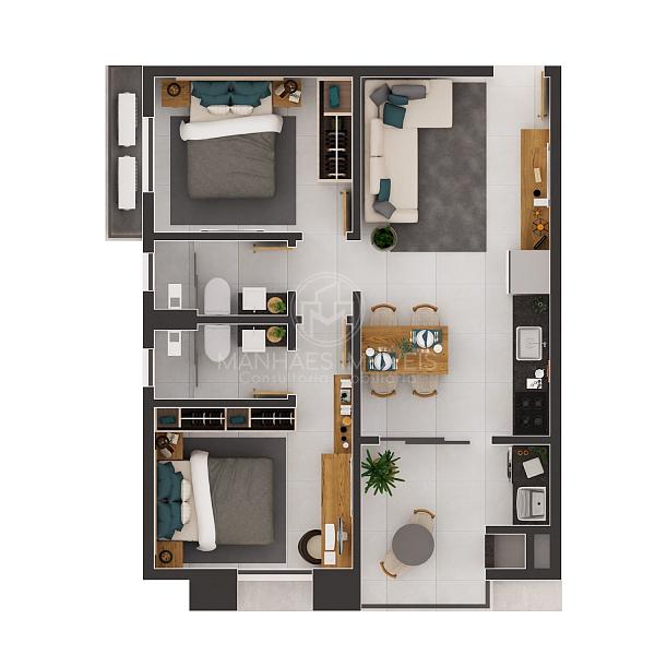 2 dormitórios (1 suíte)