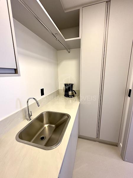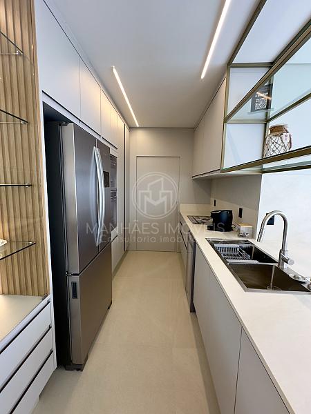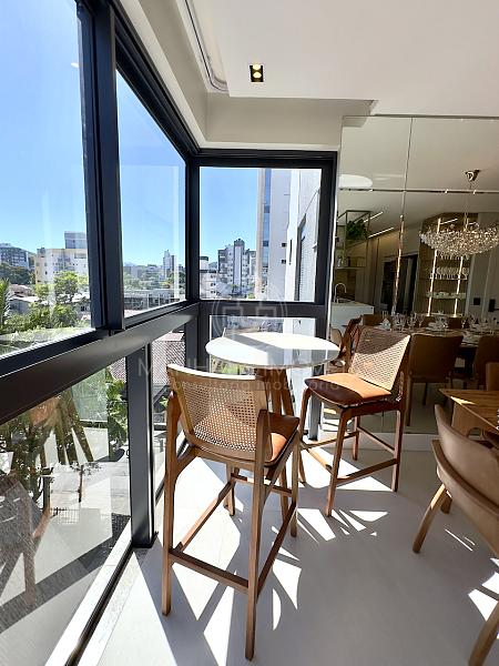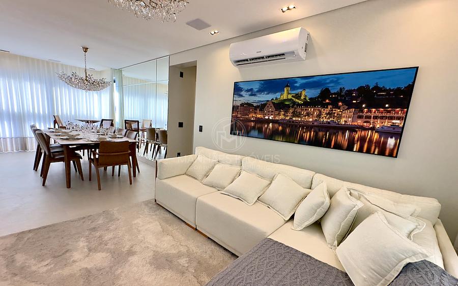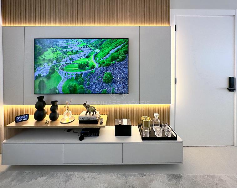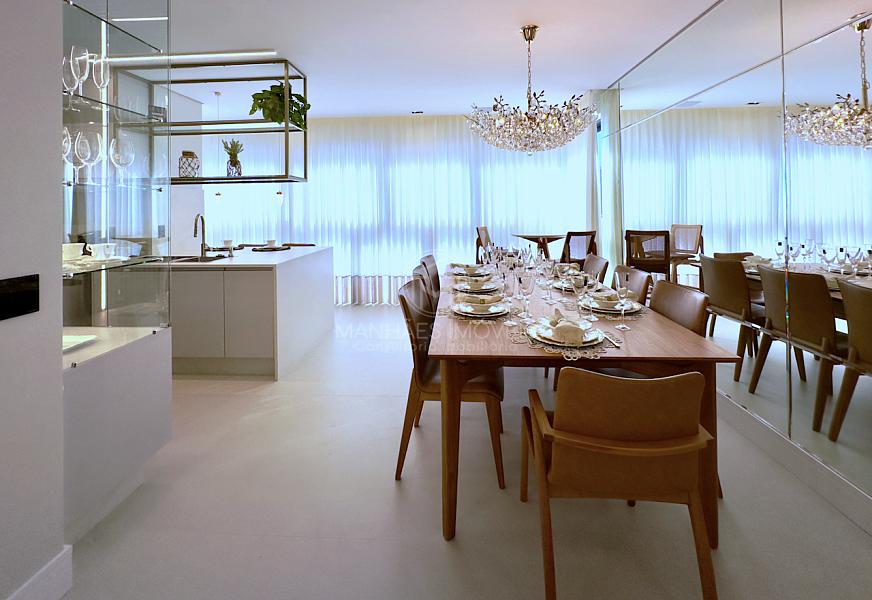 Apartamento Mobiliado: Living com cozinha integrada e ilha gourmet