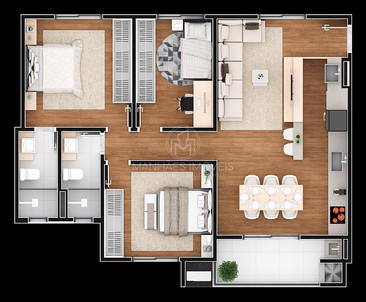 Planta humanizada do Apartamento Tipo 03 - 82m² priv.