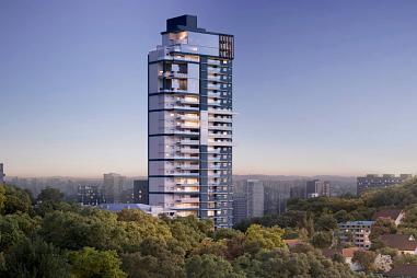 - Diferenciais de acabamento: Tratamento acústico nas esquadrias, Ambientes rebaixados em gesso liso, Infraestrutura para água quente na cozinha, nos banheiros e na lavanderia, Persianas automatizadas com blackout externo, Churrasqueira a carvão, Ponto de coifa na cozinha com saída externa, Piso vinílico nos quartos e porcelanato padrão A nos demais ambientes, Todos os ambientes possuem iluminação e ventilação natural, Acabamento de chuveiro com monocomando, Nicho embutido na área do box