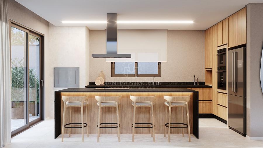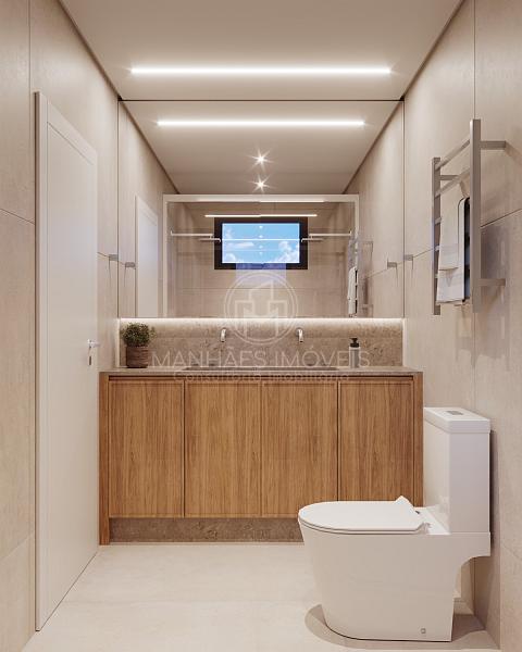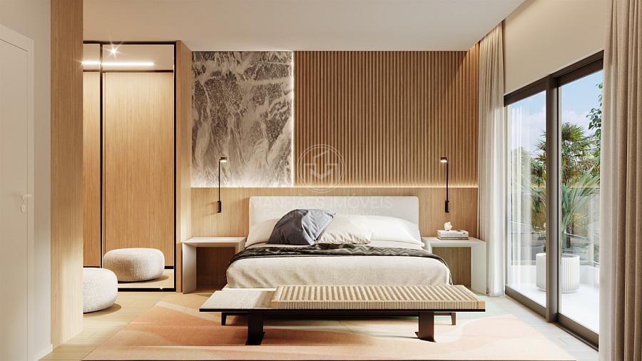 - Diferenciais de acabamento: Tratamento acústico nas esquadrias, Ambientes rebaixados em gesso liso, Infraestrutura para água quente na cozinha, nos banheiros e na lavanderia, Persianas automatizadas com blackout externo, Churrasqueira a carvão, Ponto de coifa na cozinha com saída externa, Piso vinílico nos quartos e porcelanato padrão A nos demais ambientes, Todos os ambientes possuem iluminação e ventilação natural, Acabamento de chuveiro com monocomando, Nicho embutido na área do box