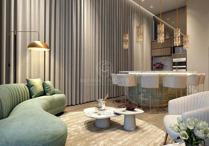 Cobertura Duplex (pavimento superior): Amplo Living e Jantar integrados com 136m²