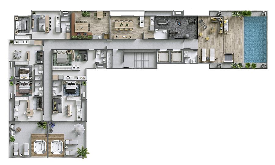 Em busca de um futuro mais sustentável e pautado num ambiente colaborativo, o Studio H Residence conta com um exclusivo projeto compartilhado, que permite desfrutar de tudo aquilo que é necessário, mas que você não precisa ter entre quatro paredes. É a perfeita união entre modernidade e bem-estar.